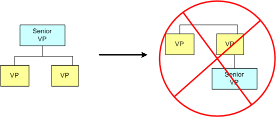 For example, if it makes economic sense to tuck or merge an obsolete unit run by a senior VP under a “regular” VP for the betterment of the whole org, the top dogs won’t do it out of “respect” for the titular system of privilege. God forbid that a senior VP report to a regular VP. It’s verboten in CCH-land. Another corpo faux pas is forming an org that may increase profitability but has a VP reporting to a lowly Director. Ain’t gonna happen.