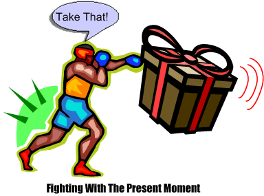 And these events happened within the space of just one hour at the gym! If I tried to recall all my bouts with the present moment yesterday, I’d probably need several more pages to recount them. How about you? How many fights with the present moment were you in yesterday?