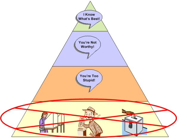 After reading Chetan Dhruve’s “Why Your Boss Is Programmed To Be A Dictator“, I’ve had a change of heart. I’ve concluded that hierarchy is a symptom and not the dominant cause of dysfunctional corpricracies. In his book, Mr. Dhruve skillfully develops a compelling case that the lack of the right to vote managers into and out of higher status slots in the hierarchy is the real cause of poor org-wide performance and DIC-force suffering in the workplace.