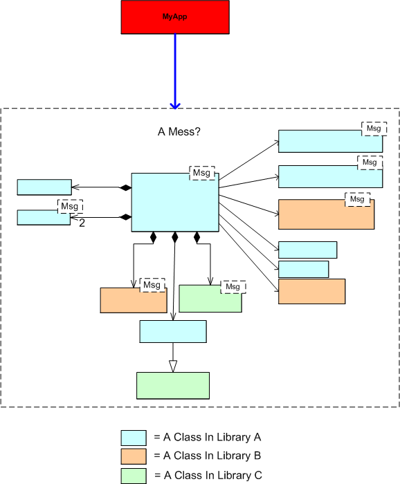 So, what did I do next? I briefly looked at step 3 and then I careened off course. I went out to stalk the library code author with the intent of ripping him/her a new one. Hah, just joking! What I really did was this. I stepped back from the hundreds of lines of source code and I reverse engineered a simpler, abstracted class diagram of the mess. By distancing myself from the code and using the more abstract class diagram to understand the code, I came to the same conclusion – it was a freakin’ mess. D’oh!