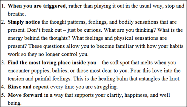 I’ve been following Leo Babauta, the creator of ZenHabits.net, for several years. Check out his inspirational story of personal transformation here: “About Leo“. In a recent Zen Habits newsletter, guest poster Gail Brenner suggested the following minimalist guide to inner peace: