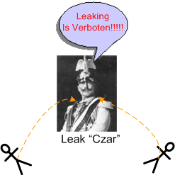 I’m sure that our government is going down the right path with the strategies they’re proposing for stopping future Wikileaks type fiascos. Our government SCOLs need to declare “a war on leaks” and appoint a “Leak Czar“. Wars and czars are sure-fire solutions that have worked before on terrorism, drugs, crime, and obesity, right? Maybe businesses should employ the “war” and “czar” metaphors too. Oops, they already do, but without publicly espousing it.