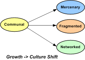 If, during growth, the company’s leaders don’t steer the org toward the culture that they want, or they hard-headedly maintain that their culture is still communal when a shift has occurred, then the implicit-explicit cultural mismatch that triggers low productivity will manifest. Bummer for all involved.