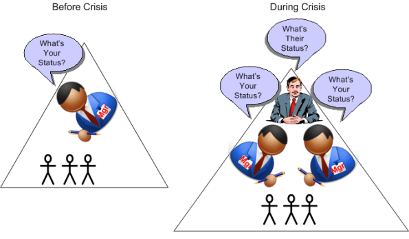 On the other hand, a different pool of leadership experts promotes the unintuitive loosening of controls and less formality in a time of crisis – to allow more ideas from more people to surface and have a chance of resolving the crisis. Which approach do you think has a better chance of success?
