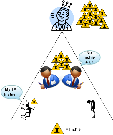 Alas, even though you now know that Inchies exist, don’t get your hopes up. You see, the criteria managers at level N (where N > 0) use for disbursing Inchies down to the less infallible people at level N-1 are random. Even among managers within a given level, the award criteria is arbitrarily different. Plus, to make the game more difficult, the dudes who awarded you your Inchies can take them back whenever they feel the need to “scratch your Inchie” – especially if you piss them off with career ending moves. D’oh!