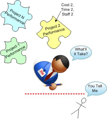 Via work breakdown structures, time cards, and other management tools, most orgs track the time its people spend on projects. Thus, over time, a significant database of historical cost and time data that can be reused to estimate the cost and schedule of future projects gets accumulated. Alas, BD00’s opinion is that most org controllers don’t leverage their treasure troves of information to get reasonable “rev 0” estimates of future efforts. Either :