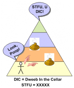 In unmindful orgs (“unmindful” is the politically correct way of referring to CLORGs and DYSCOs), most people in the borg are conditioned to auto-think that expertise equates to hierarchical position. Thus, the infallibles in the upper layers, while espousing otherwise, don’t strive for open communication and they ignore both weak and strong negative feedback signals from the DICs in the lower, less “expert” layers. To add insult to injury, since the DICsters down in the boiler room are conditioned to auto-think the same expertise-position relationship, they don’t “speak up” out of fear of looking, or being told that they are, stupid. Bummer.