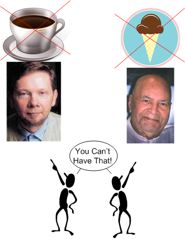 Similarly, spiritual guru “poonjaji” said that he was scolded for liking and eating ice cream. I can’t remember exactly how he handled the situation, but I’m positive that he disarmed the fault-finder with grace and wisdom.