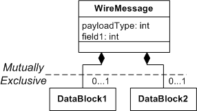 For the multi-threaded CSCI that I’m developing, I’ve got to receive and decode serialized messages off of “the wire” that conform to the design below. Depending on the value of “payloadType” in the message, each instance of the “WireMessage” class will have either an instance of “DataBlock1” or “DataBlock2” embedded within it.