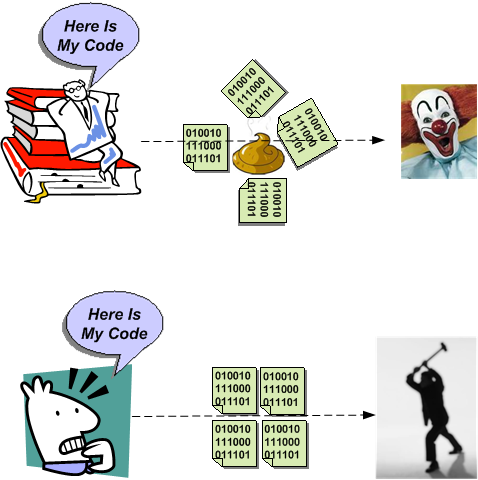 Always code as if the maintainers of your code will be bozeltines who won’t have a freakin’ clue about what it does, how it works, or how to modify it – and so that they’ll be in awe of how much smarter you are than them.