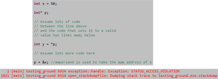 So, what good is a reference when C++ already has pointers? References are safer than pointers. When defining a pointer, C++ (like C) doesn’t require that it be initialized (as the first code fragment shows) to a valid address value immediately. Thus, if the code that initializes the pointer’s value to a valid address is far away from it’s definition, there’s a danger of mistakingly using it before the valid address has been assigned to it – as shown below. D’oh!