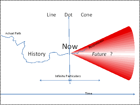 So, what does the future hold? Hell, I don’t freakin’ know. My friend Bill Livingston‘s line-dot-cone sketch says it all: