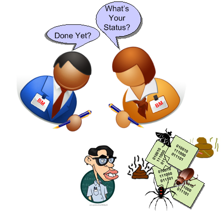 Fuggedaboud writing some code, a lot of the self-pseudo-elite dudes are afraid of even reading code for quality. Hence, to justify their existence, they focus on being meticulous process, schedule, and status-taking wonks – which of course unquestioningly requires greater skill, talent, and dedicated effort than designing/coding/testing/integrating revenue generating code.