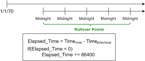 • use the converted values to perform their internal time difference computations without having to check/compensate for midnight rollover,