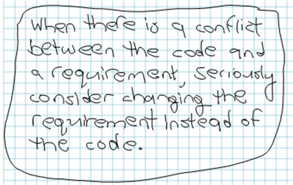 It’s easier (read as lower cost) to retest existing code with an “updated” requirement that was wrong or impossible to satisfy than it is to change and retest code in order to match an “unquestioned” requirement.