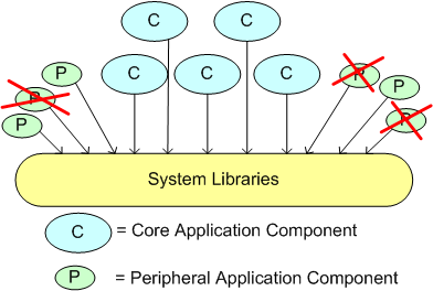 Assume that you’re working on a software system comprised of a set of core and peripheral application components. Also assume that these components rest on top of a layered set of common system libraries.