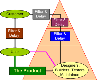 In industries like B2B and government contracting, where the customer and end user are separate entities with differing wants/needs/agendas, the typical institutional design structure is shown below: