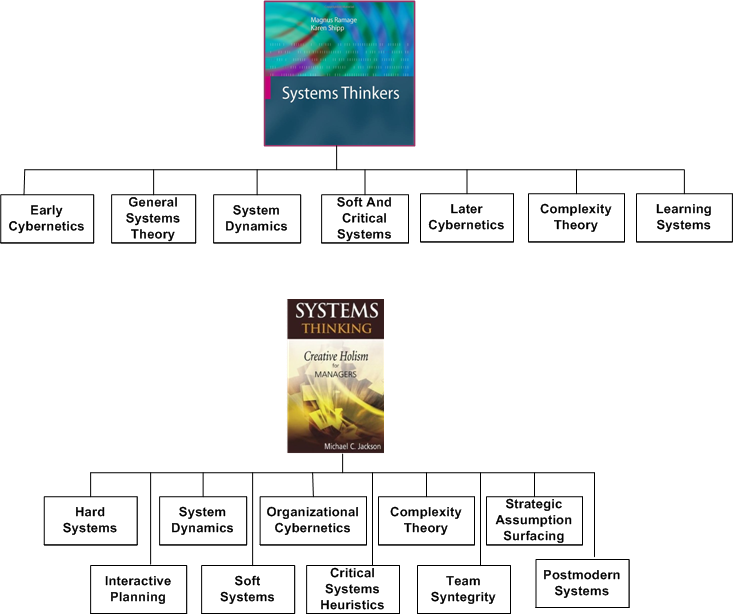 In a bit of irony, the systems thinking discipline, which is all about holism, has followed the well worn yellow brick road that leads to frag city. For example, compare the disparate structures of two (terrific) books on systems thinking: