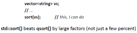 - Show them compiler generated assembly output comparing the “void *” C-style code with a more expressive, less error-prone, more readable C++ equivalent. Odds are that the compiler-optimized C++ code will be much shorter than the hand-crafted C code. (STL)