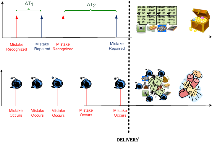 First question: Is “mistake recognition” allowed in your organization? Second question, if, and only if, the answer to the first question is “yes“: How many different “enabler” groups are required by your process to “have a say” in the path from “recognized” to “repaired”