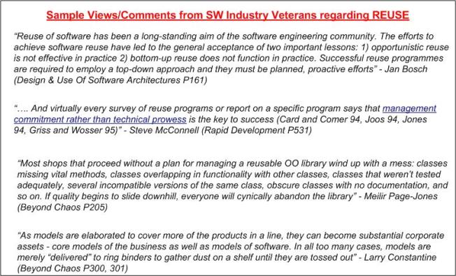 As a follow up to my last post, I decided to post this collection of quotes on software reuse from some industry luminaries: