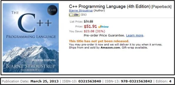 It won’t arrive for awhile, but it’s on its way: the C++11 rendition of Bjarne Stroustrup‘s “The C++ Programming Language“.