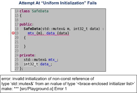 But Mr. Compiler, I’m trying to initialize a non-const reference (std::mutex& mtx_) lvalue with an rvalue of the exact same same type, another non-const reference (std::mutex& m). WTF?