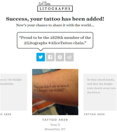 It’s official! I’m the 4,829th member of the “Alice In Wonderland Tattoo Chain“.