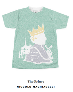 At Litograph.com, besides tattoos, you can buy T-shirts and other items with the entire text of one of many classic works of literature delicately imprinted on them. I purchased the most appropriate T-shirt I could find for BD00, Machiavelli’s “The Prince” š