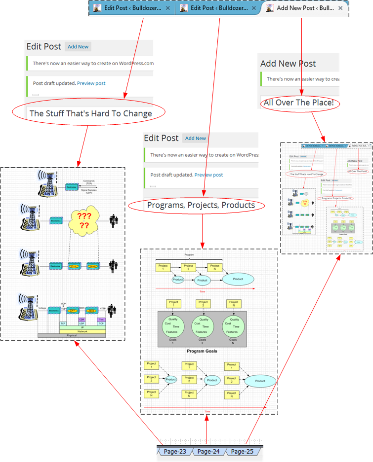 In case you’re wondering what my browser and visio tabs looked like during my maniacal, mutli-tasking, fiasco, here’s a peek into the semi-organized mess that was churning in my mind at the time:
