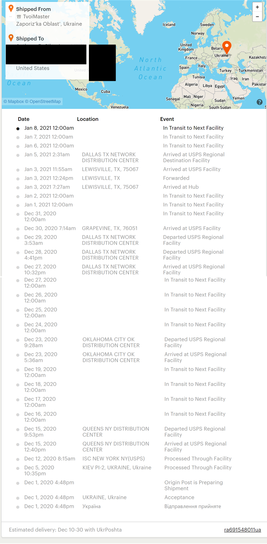 As you can see from the tracking record below, the USPS is playing hot potato with my swag. My precious seems to have entered an infinite, Escher-like, transit loop.