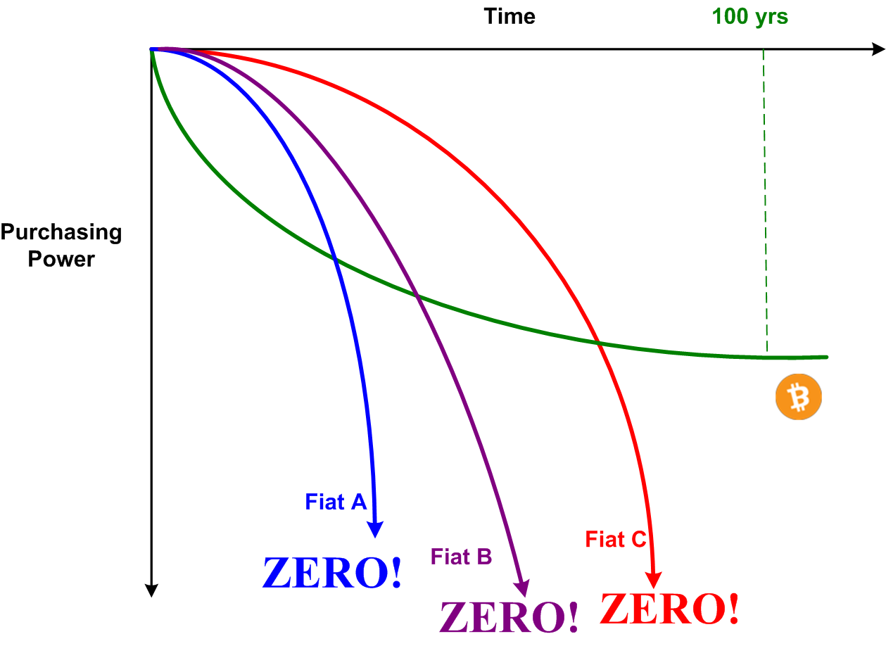 The succession of relentless halvenings executed by the decentralized Bitcoin protocol software eventually drives inflation to zero. The money printer stops forever at 21M bitcoins printed. In fiat-denominated nations, all money units are printed from one source: the country’s “independent” (lol) central bank. In every known case in history, central banks eventually are pressured by their governments to keep inflating the money supply to keep the economy roaring. Keeping inflation low takes a back seat to gorging their donors with free money. Bitcoin don’t give a fuck about donors or governments or central banks. Bitcoin don’t care if you or I use it. Bitcoin just is.