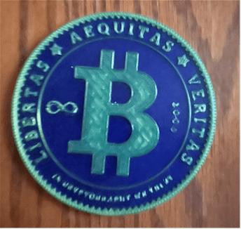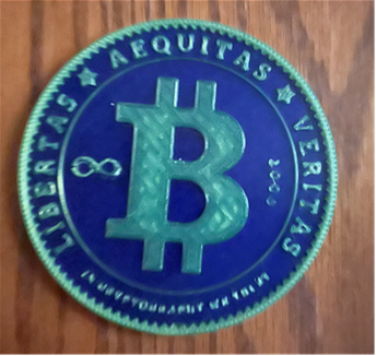 Oh, and before I go, I want to show off a beautiful, 3D printed, Bitcoin coaster that a longtime friend, whose coattails I luckily rode to financial security over decades, gave to me recently…