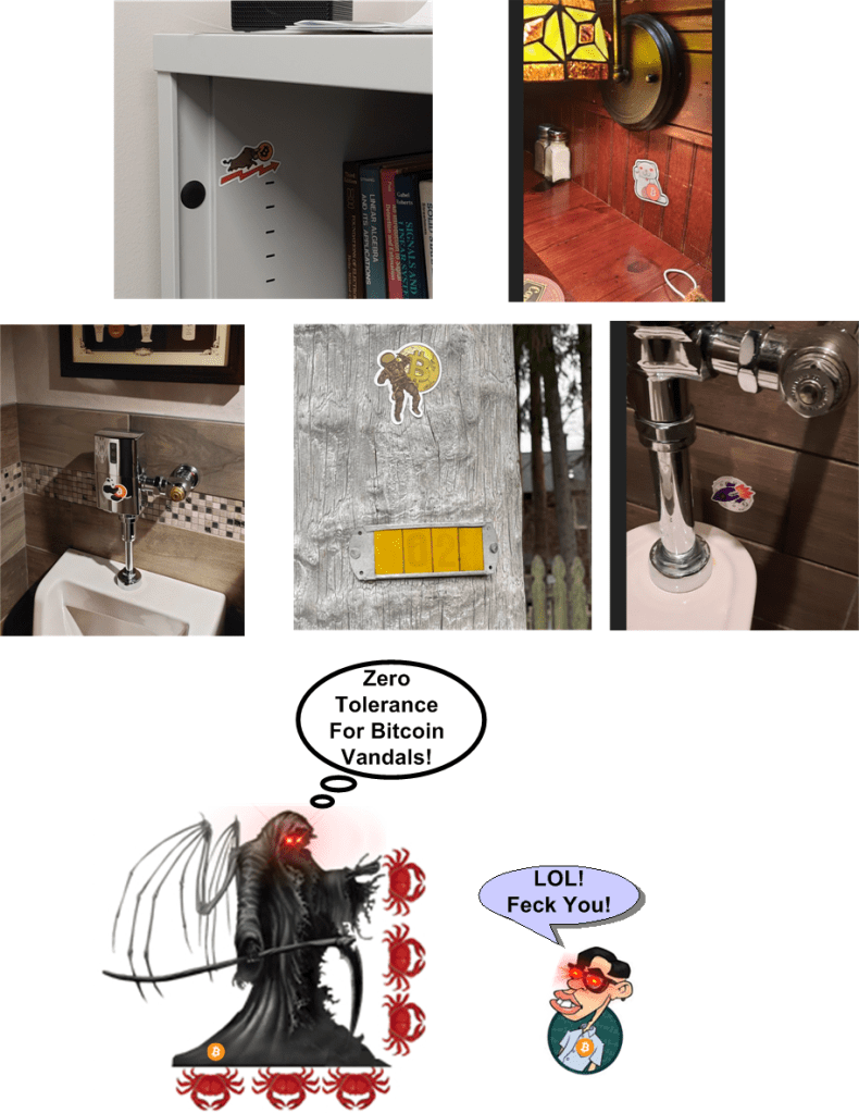 Before exiting, I want to share some more recent Bitcoin Vandal crime scenes with you. The Emperor hates the Bitcoin Vandal too. He’s deployed his Orcs out in the field to hunt down the scoundrel.
