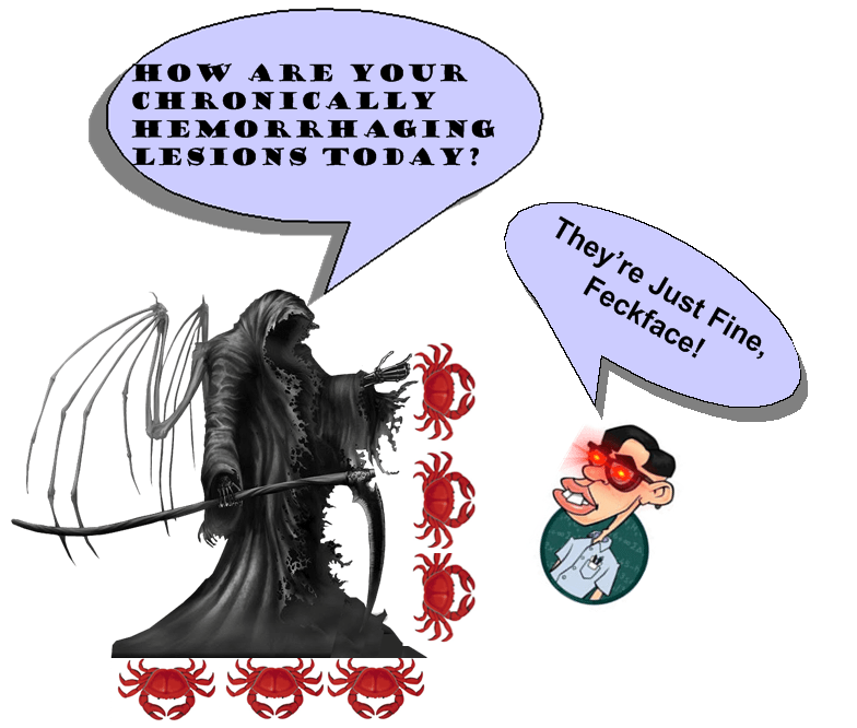 Post post note : I finished this dumbass post just as an “edible” was starting to kick in. Since I can’t attribute the errors and mistakes herein to being psychotropically inebriated (aka “stoned”), I hereby attribute them to the chronically hemorrhaging lesions inside my brain.