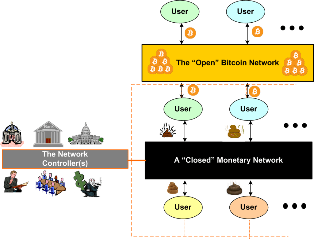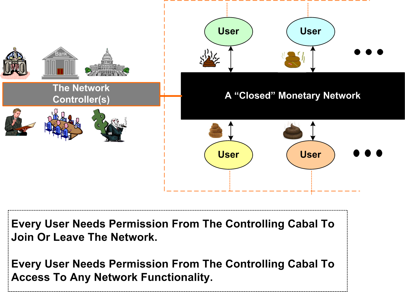 Before the Bitcoin Immaculate Conception was birthed into the world by Satoshi Nakamoto on Jan 3rd, 2009, we only had, and still do have, and still will have, a world filled with closed, monetary networks like this: