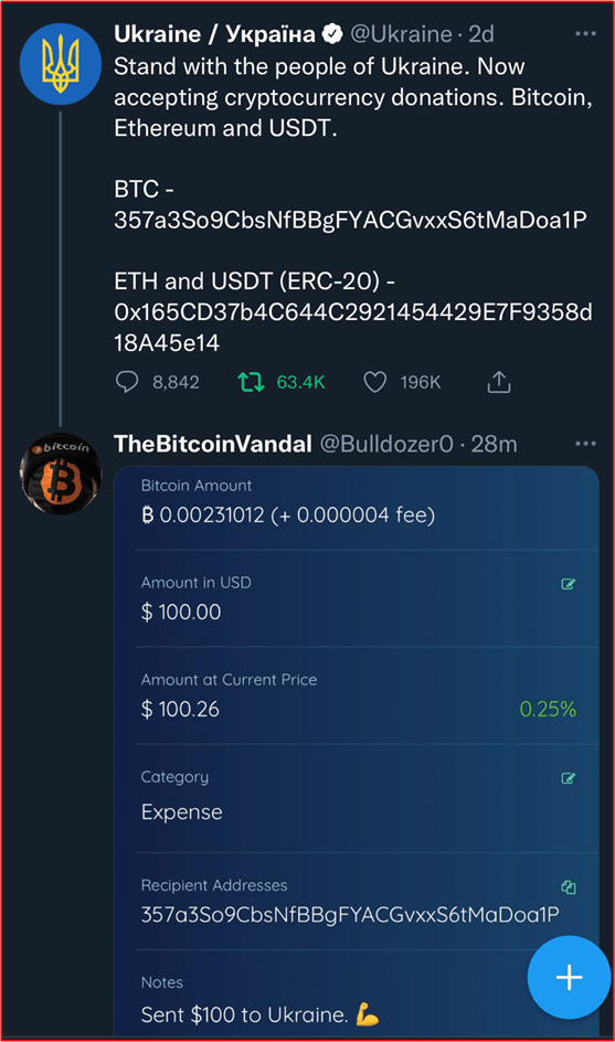 I just sent $100 in Bitcoin to Ukraine without having to get any “official approvals”, or having to pay any ridiculous fees to rent-seeking middlemen like Western Union, or having to wait for days/weeks for the international transaction to clear. This is a glimpse into the future, which, of course, is already here – it’s just not evenly distributed according to William Gibson. I don’t know how or exactly when humanity will arrive there, but I’m confident it will.