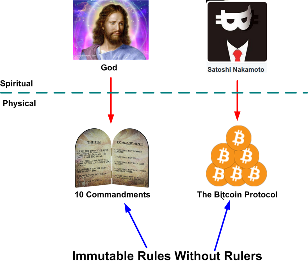 When you glance at the picture below, please don’t go overboard and think I’m comparing lord Satoshi to god. The purpose of this post is simply to compare the 10 commandments with the Bitcoin protocol for comedic effect, nothing more. Happy Easter!!!!!