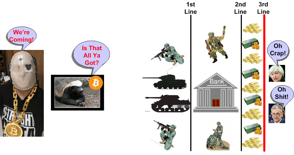 As Elton John and Bernie Taupin bring beauty and grace to music, the Bitcoin badger and reaper bring beauty and grace to hard money. The fiat-based, QE-crazed, financial systems of the world don’t stand a chance against the Bitcoin badger and reaper. The badger relentlessly rips ’em up, and the reaper slowly drags ’em away.