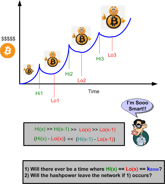 Now that I got the poor-me cancer complaint off my chest, it’s time to talk about Bitcoin yet again. At some unknown point in time, the Bitcoin Smiley Model (BSM) crossed the chasm in my mind from formless energy to a formed thought. The BSM is a simplified abstraction of the following bitcoin price chart from Bitcoin advocate Dan “HODL” Held. And yes, his real last name is “Held”. Thus, he was destined to be a Bitcoiner at birth.