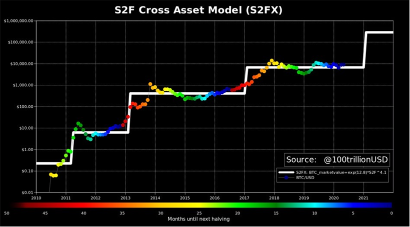 The reason for all the increasing buzz in the Bitcoin community is that the first version of PlanB’s model (S2F) predicts a price of around $55K within the next four years. The second version of the model (S2FX) updates that prediction to $288K!