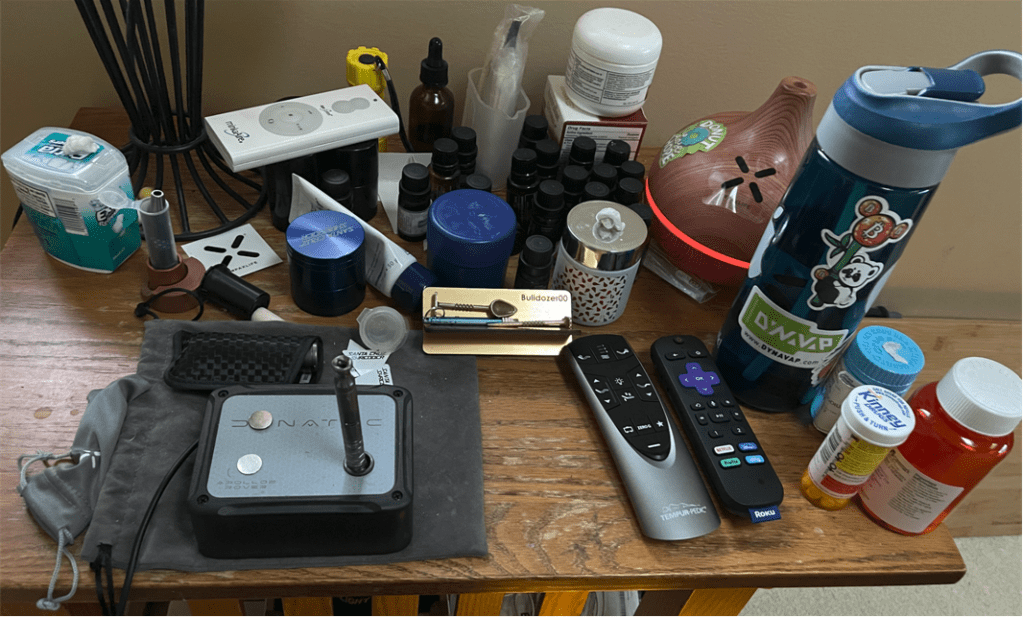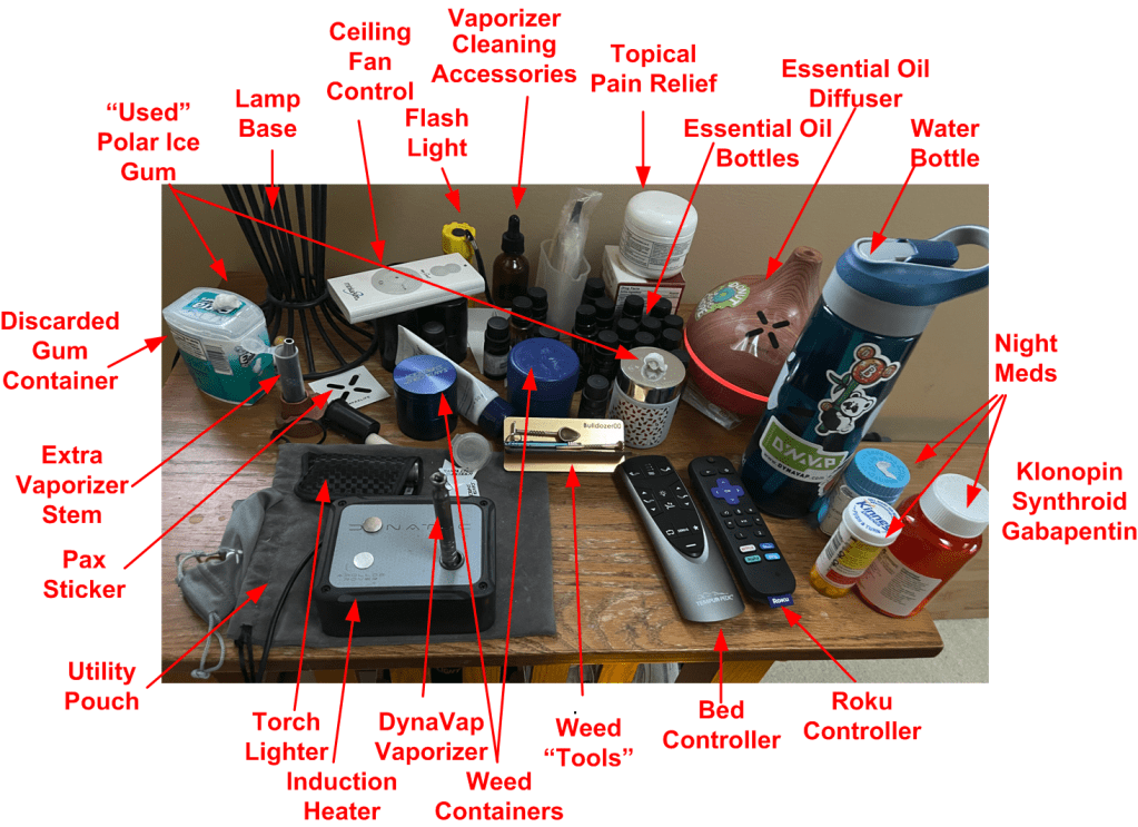 Dear OnlyFans, checkout BD00’s resolute desk below. Ok, it’s not a resolute desk. It’s a simple end table with a lot of schitt on it. The desk, along with my new, Osaki massage chair, will be cremated with me when the Emperor wins the final battle.