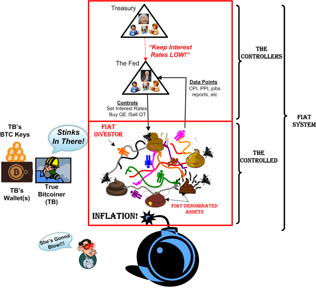 I’ve been capturing my understanding of the structure of what a typical unpegged fiat system looks like. I produced the concoction below after many maniacal iterations. I think the model is applicable to every country on earth that has a central bank to control its national fiat system. It applies to all forms of government: democracy, dictatorship, monarchy, junta, politburo, etc. If you don’t agree, then help me understand what’s wrong with the model.