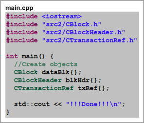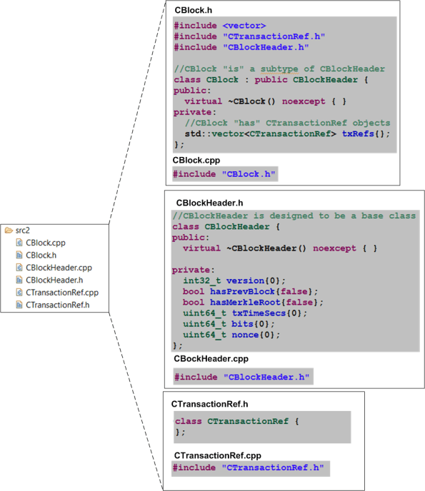 - A CBlock “has” one or more CTransactionRef objects that it creates, owns, and manages during runtime