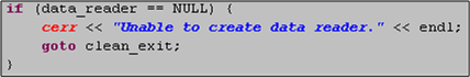 A object modeling expert gave me this advice “When you need goto, then use goto.” Implication being that sometimes goto is the correct c/c++ language construct to implement.