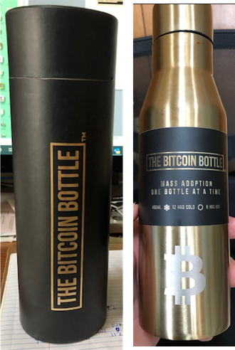 In keeping with my recent tradition of somehow hawking Bitcoin in each post for your future salvation during the upcoming financial apocalypse, I present to you my newest Bitcoin swag item below. It’s a well crafted, hot/cold bottle that I bought off of Etsy from a seller in England. Kudos to whoever conjured up the cheeky motto: “Mass Adoption One Bottle At A Time.“