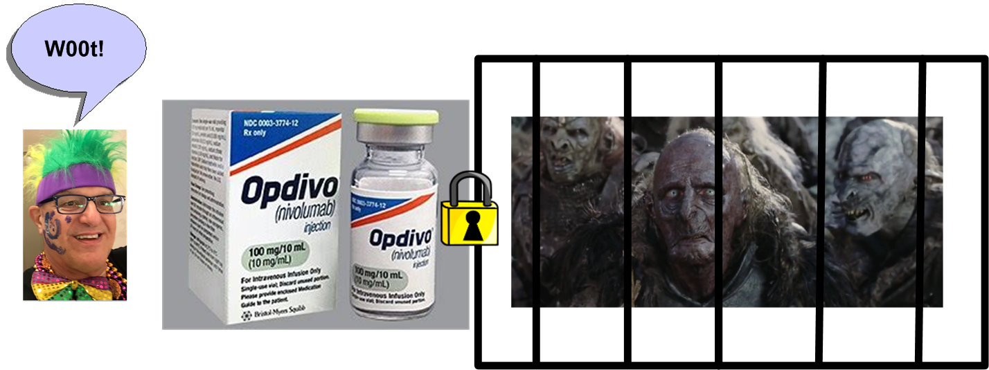 The Emperor Of All Maladies hates the phrase “no change“. That means his blood thirsty orc soldiers are still being held at bay by my ex$pen$ive savior, Opdivo.