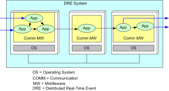 The figure below shows a generic DRE system where raw “samples” continuously stream in from the left and value-added info streams out from the right. In order to minimize the downstream disaster of “we built the system but we discovered that the freakin’ architecture fails the latency and/or thruput tests!“, a bunch of critical “non-functional” decisions and must be made and prototyped/tested before developing and integrating App tier components into a potentially releasable product increment.