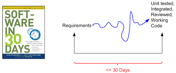 The trouble I have with this 30 day “law” is that not all requirements/user-stories/function-points/”shalls” are created equal. Getting from a requirement to tested, reviewed, integrated, working code may take much longer – especially for big, distributed systems or algorithmically dense components.