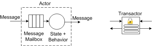 At the simplest level of description, an Akka-based application is comprised of actors running under the control of an overarching Akka runtime system container. An actor is an autonomous, reactive entity that contains state, behavior, and an input mailbox from which it consumes asynchronously arriving messages. An actor communicates with its parents/siblings by issuing immutable, fire-and-forget (or asynchronous request-and-remember), messages to them. The only way to get inside the “head” of an actor is to send messages to it. There are no backdoors that allow other actors to muck with the inner state of an actor during runtime. Like people, actors can be influenced, but not explicitly coerced or corrupted, by others. However, also like people, actors can be terminated for errant behavior by their supervisors. π